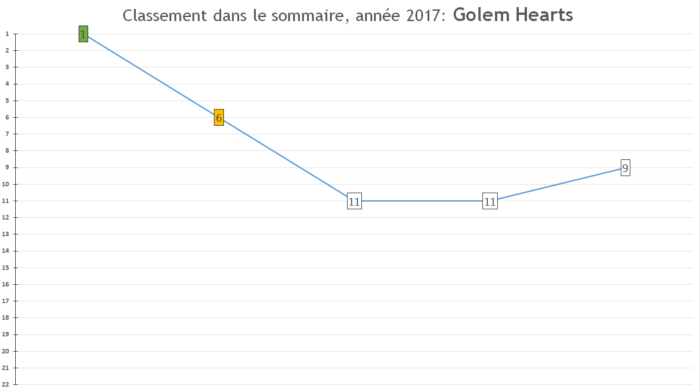 Position dans le classement des cinquante meilleures ventes 2017: Trentième avec une estimation de 1,365,417 exemplaires vendus.
