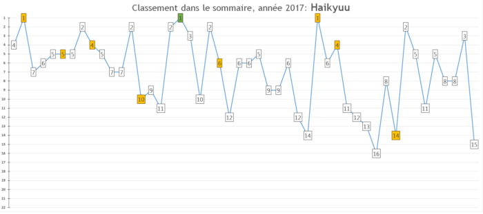 Rappel des prévisions 2016: « 2017 devrait être la première année depuis 2014 où Haikyuu ne bénéficiera pas d’une adaptation animée, faute de contenu suffisant pour permettre une quatrième saison de 13 épisodes. Il faudra voir si ça entraîne une chute réelle des ventes mais vu le fandom très large de la série, les dégâts devraient être largement atténués. »