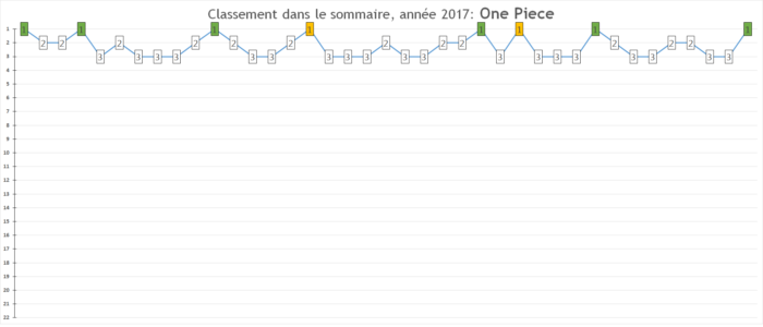 Prévisions pour 2018: C’est certainement pas pour 2018 que je vais parier sur un déclin de One Piece qui n’est pas prêt d’arriver. Il sera toujours le n°1 sur tous les plans.